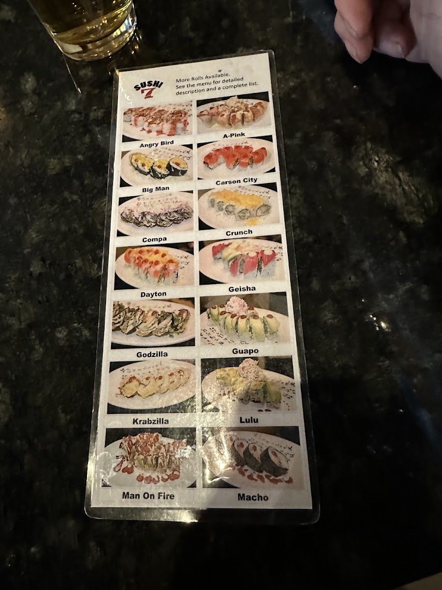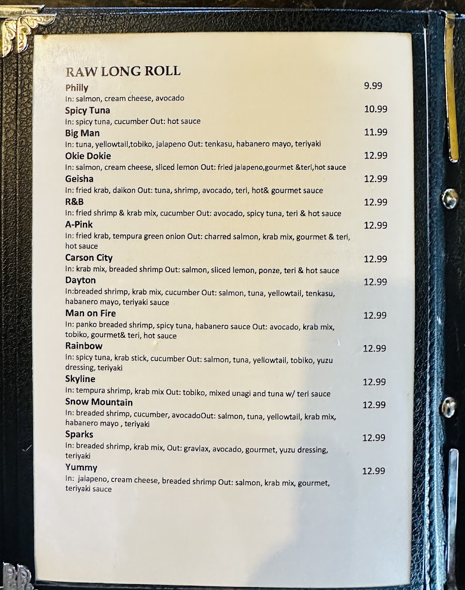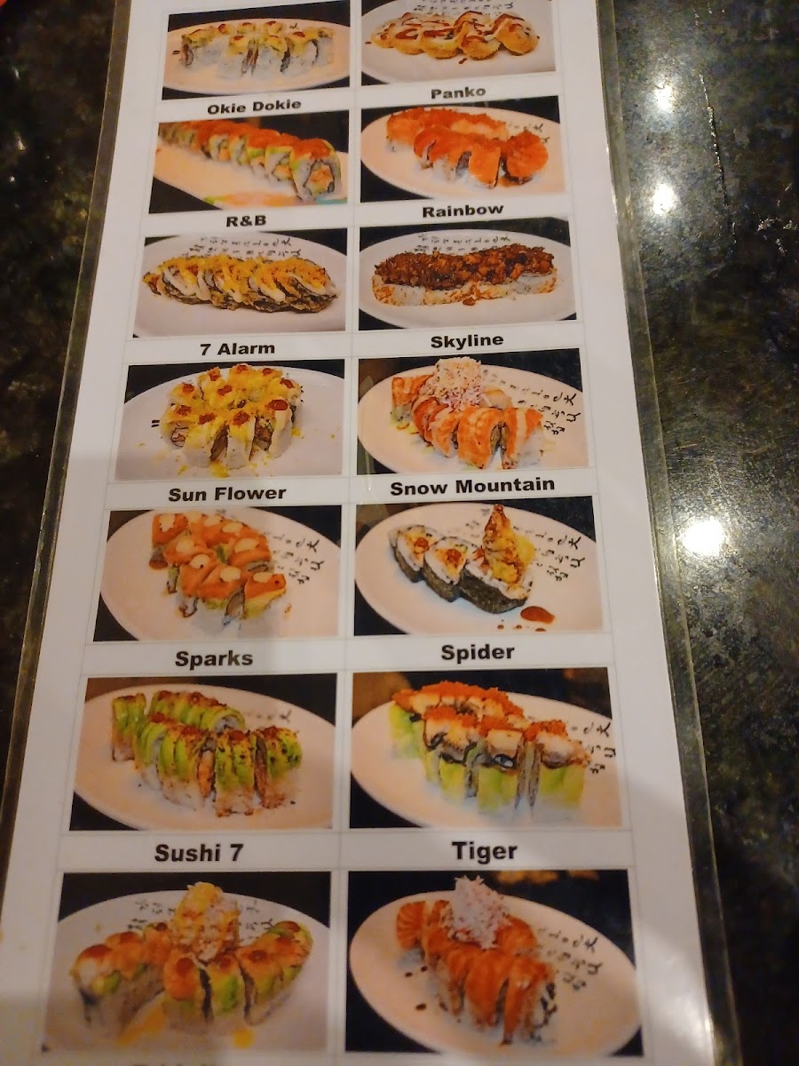 My friend and I went to Sushi 7 on a Thursday evening around 7:30pm. The restaurant was lively but not overly crowded. We were seated right away. The decor was modern and clean with an Asian flair. The service was excellent - very fast, attentive and polite. Our server went above and beyond, even teaching my friend how to use training chopsticks. The pop music playing was mellow and unobtrusive. Our drinks arrived in just two minutes. They brought us free hot sake, which tasted quite traditional. We started with an order of steamed muscles. They were perfectly cooked - not chewy or slimy. An order of four was a good size. The specialty rolls we tried were very tasty. The 7 Alarm Roll was served hot and had a nice spicy kick. The Man on Fire Roll was also pleasantly spicy but more mild. The Spicy Tuna Roll featured high quality tuna and the right temperature. The Mickey Mouse Tuna and Donald Duck Salmon played on the Disney names with subtle sweet teriyaki and more robust salmon flavors respectively. Both were good. The Sparks Roll had a subtle sweetness that we enjoyed. The Okie Dokie Roll contrasted flavors and textures nicely with a hint of lemon. Overall, Sushi 7 offered a comfortable setting, quality fish, excellent cuts and temperatures, and attentive service. Considering the high quality food and drink, the prices were very reasonable. It ranks among the best sushi experiences I've had in Reno and I wouldn't hesitate to recommend it.