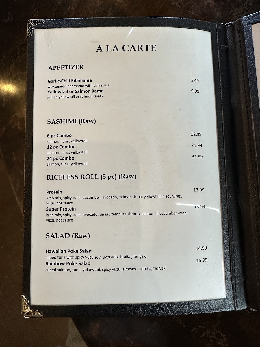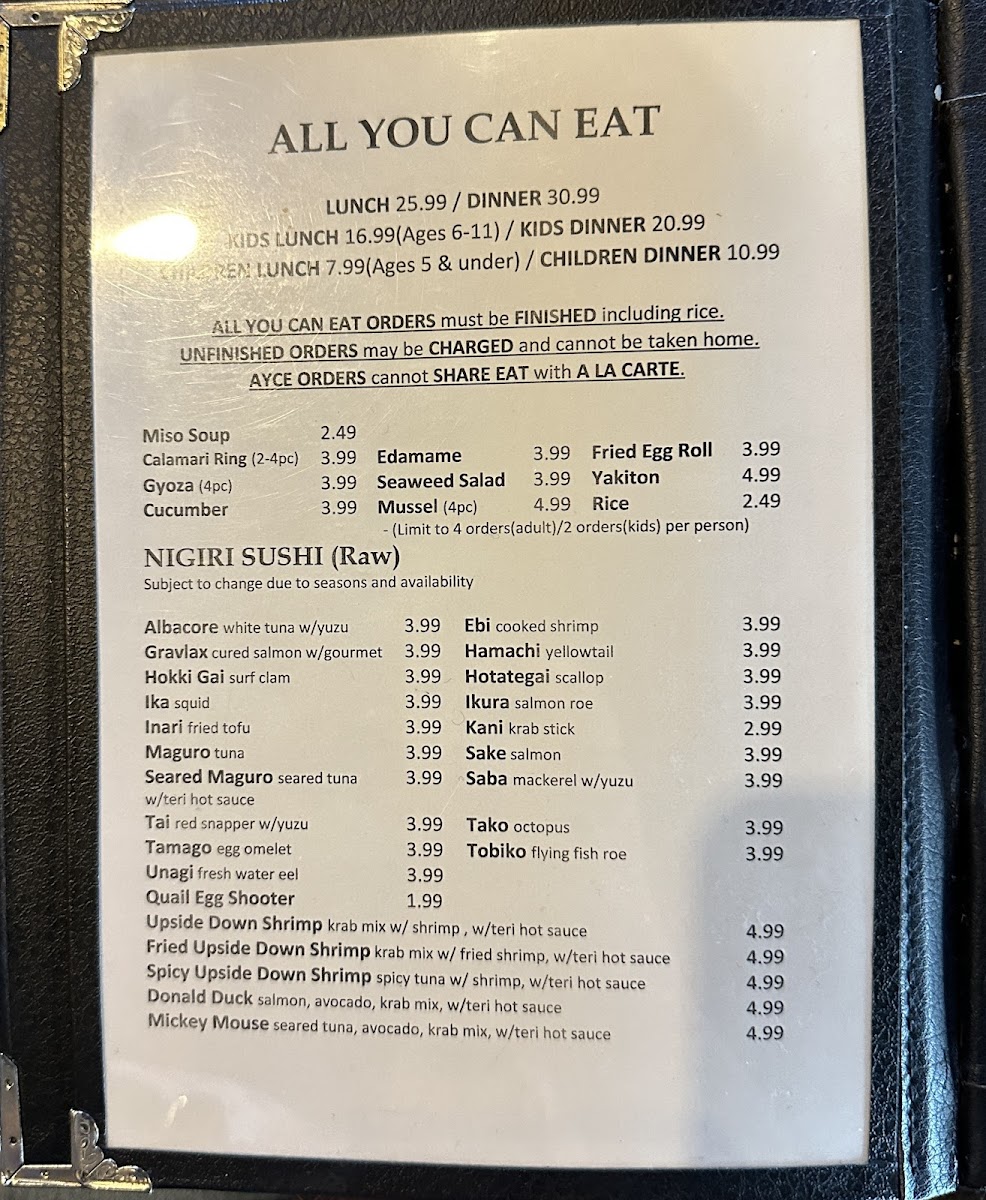 Very tasty sushi, friendly & attentive service, and great value. We did the All You Can Eat option. Between the 2 of us, we had miso soup and 7 rolls including Snowy Mountain (x2, our favorite), Lulu (our second favorite), Crystal Shrimp, Wayne’s, Rainbow, and 7 Alarm roll. The green tea ice cream for dessert was delicious - was tempted to pay for an extra serving, but I was full after the ACYE. Definitely recommend this spot.